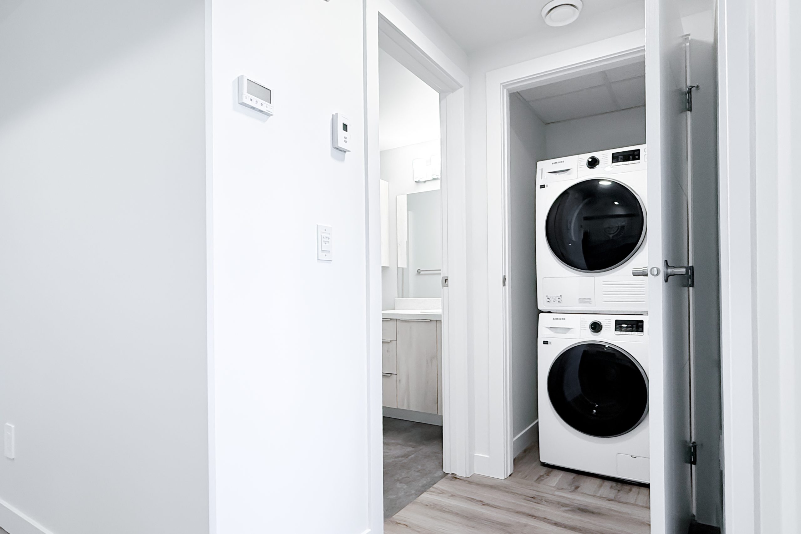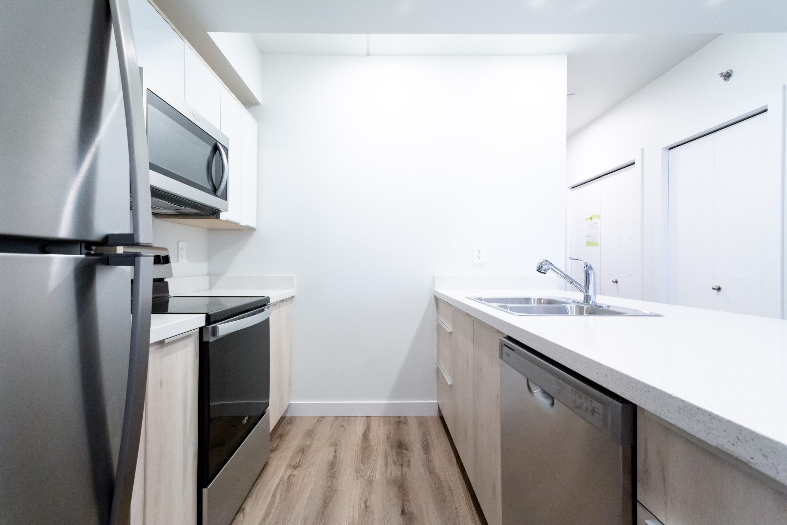 The project consists of two 25-storey towers with a total floor area of 585,632 sq.ft, which includes 474 rental suites, 13,035 sq.ft of commercial space, and seven storeys of parking totaling 493 parking stalls.